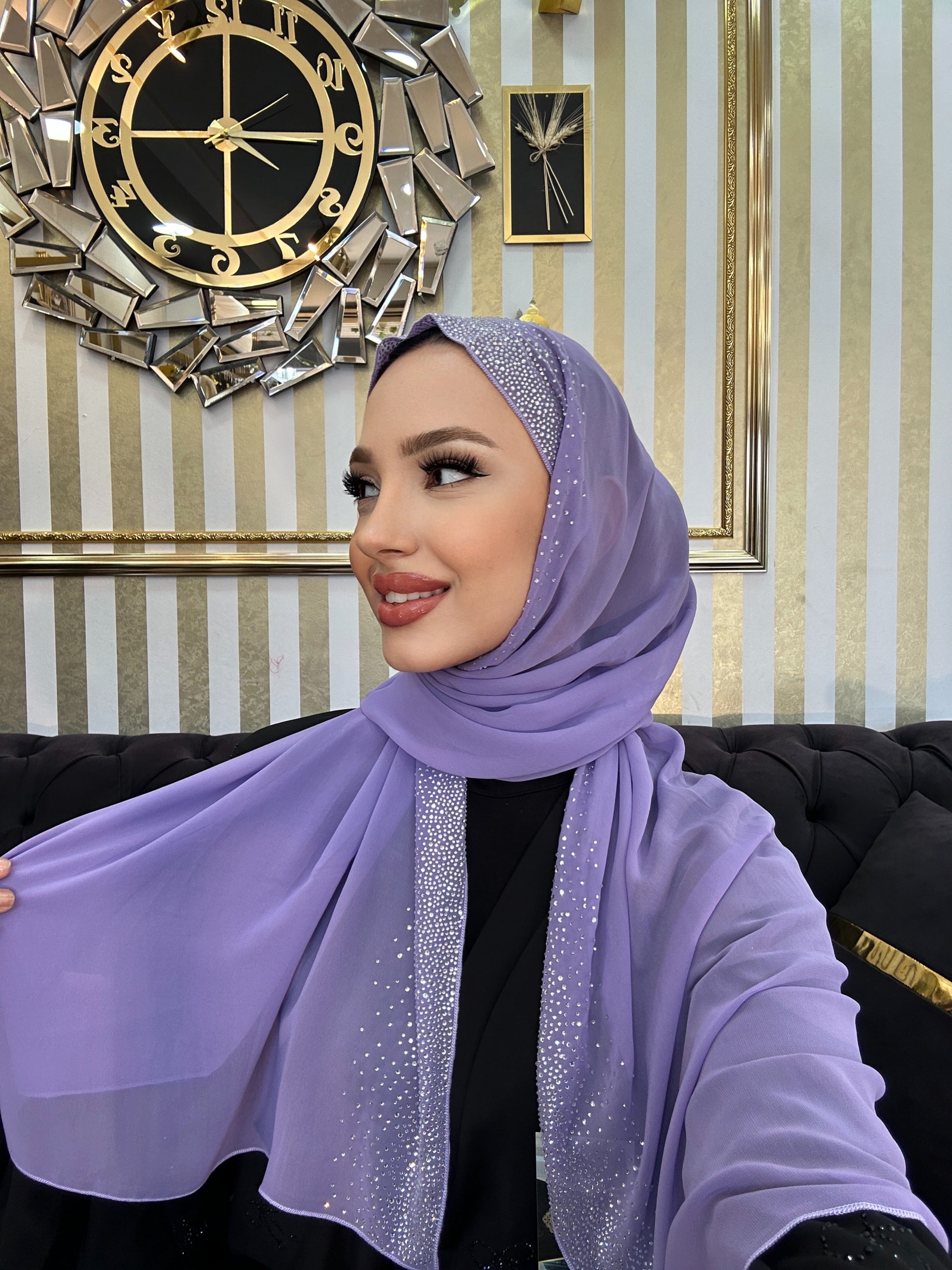 Işıltılı Taş Yağmuru Desenli Şifon Şal