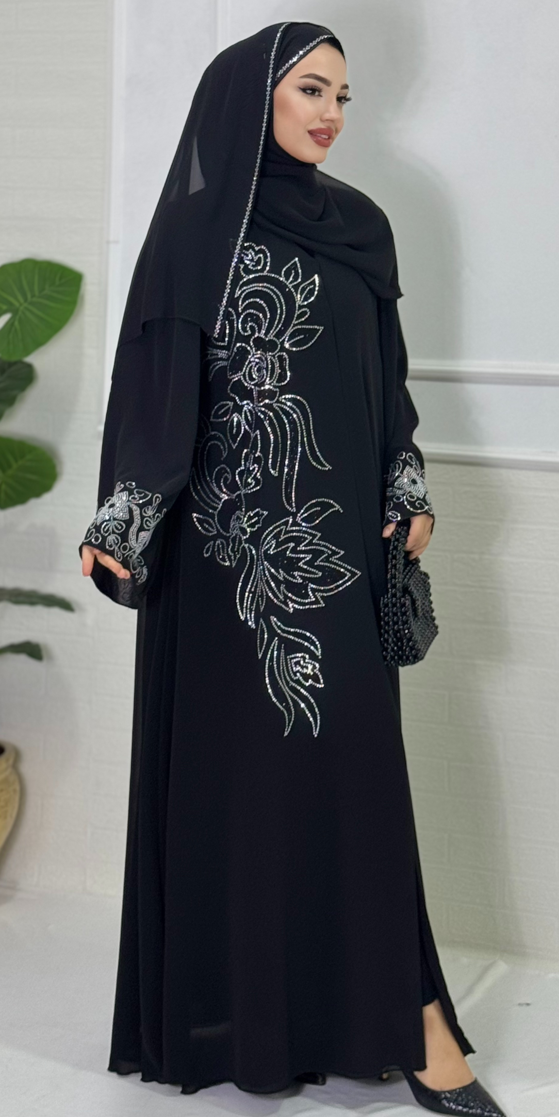 تتميز العباءة الأنيقة بتفاصيل أحجار سواروفسكي، وهي الخيار الأمثل لمن يبحث عن مظهر متطور. هذه العباءة التي ستضفي تأثيرًا متألقًا في المناسبات الخاصة والدعوات، تلفت الأنظار بتصميمها العصري والأنيق. بفضل نسيجها عالي الجودة، يمكنك التحرك بشكل مريح والحفاظ على أناقتك طوال اليوم. في حين أن التفاصيل التي تتم فيها معالجة أحجار سواروفسكي بدقة تضيف لمعانًا خاصًا إلى عبايتك، فإنها توفر موقفًا نبيلًا باللون الأسود الكلاسيكي.