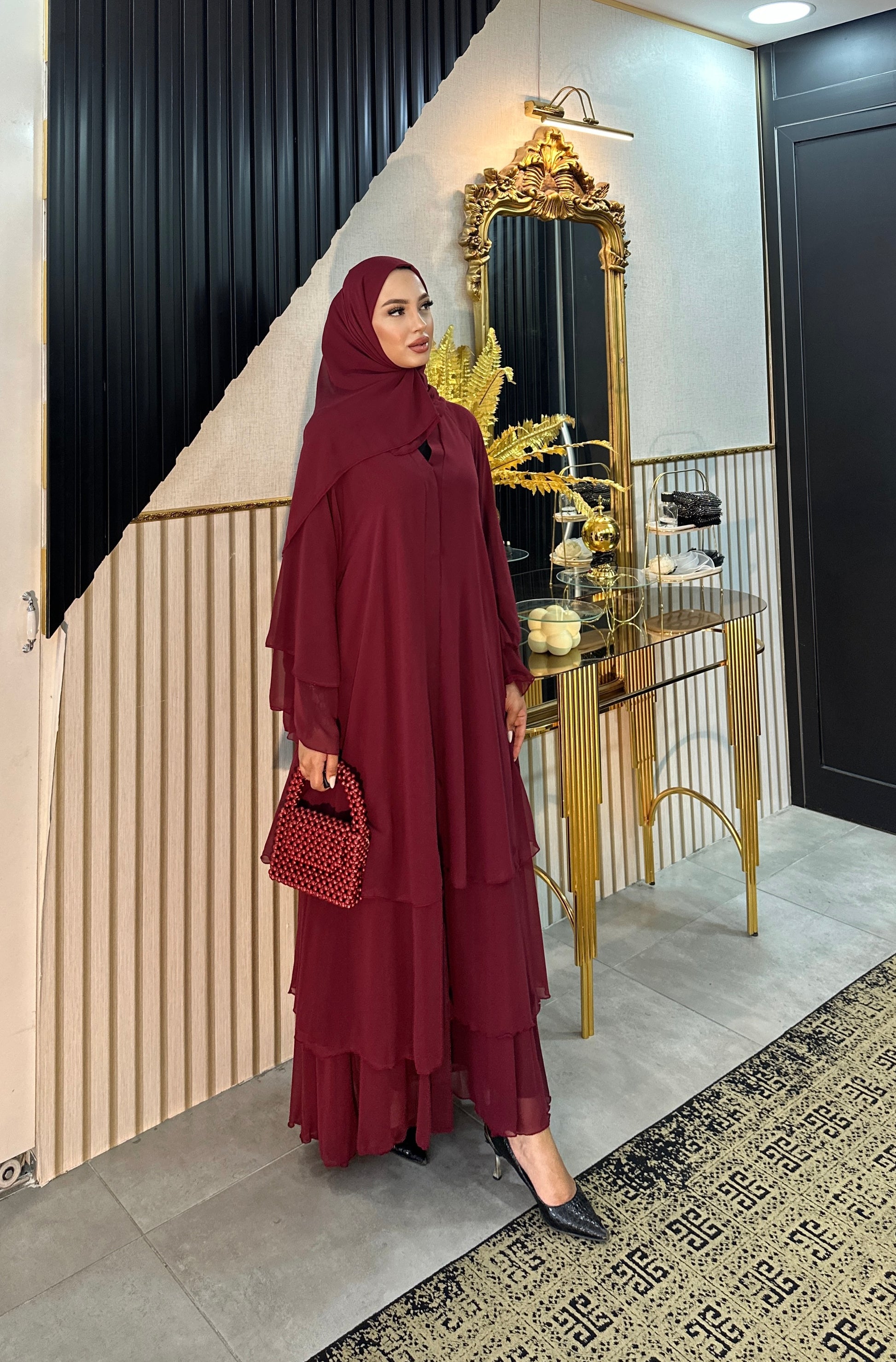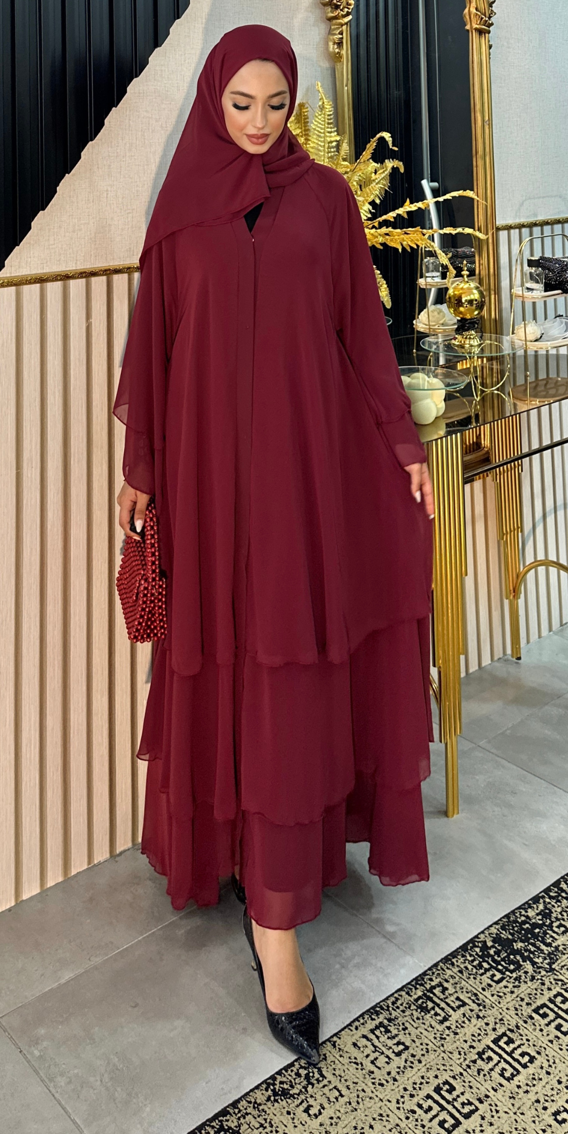 عباية بورجوندي ثلاثية الطبقات تجمع بين الأناقة مع اللون البورجوندي المتطور والقطع الأنيقة. مصنوعة من قماش عالي الجودة، توفر هذه العباءة استخدامًا عمليًا ومريحًا بفضل هيكلها المزود بنظام الإغلاق السريع. بفضل بنيته المكونة من ثلاث طبقات، فإنه يوفر مظهرًا عصريًا ومثيرًا للإعجاب للمناسبات اليومية والخاصة. الاختيار الأمثل لأولئك الذين يريدون تجربة الراحة دون التنازل عن أناقتهم.