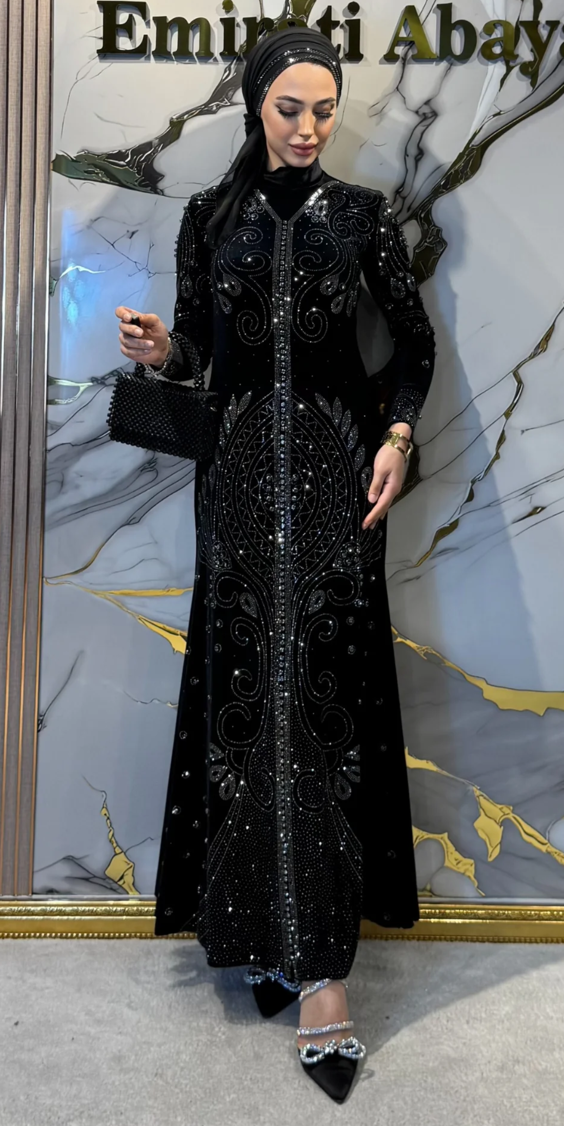 Işıltılı taş detaylarıyla süslenmiş zarif abaya koleksiyonumuz. Swarovski, janjan, gold ve rhinestone taşlarla özel günleriniz için lüks tasarımlar.