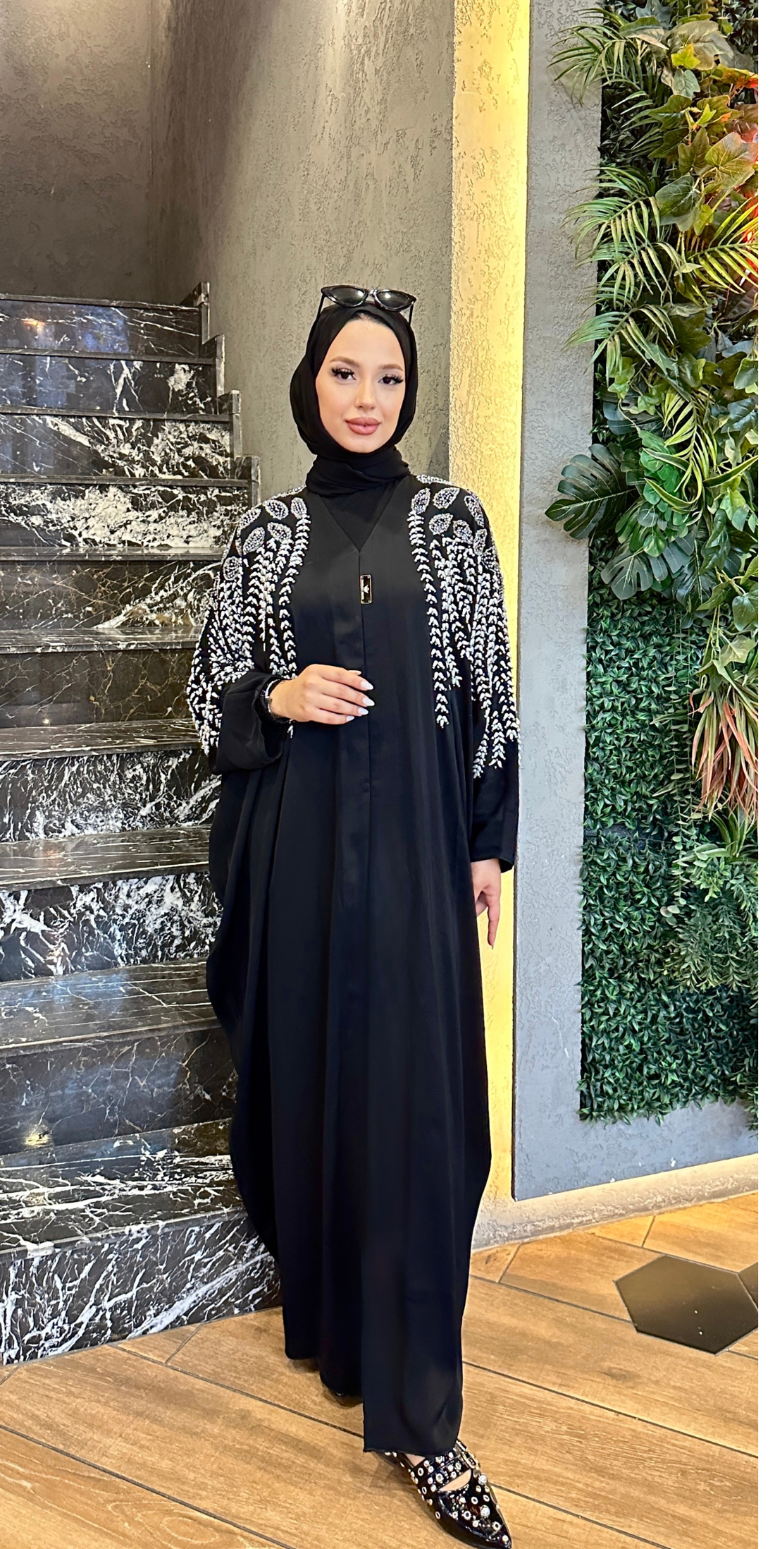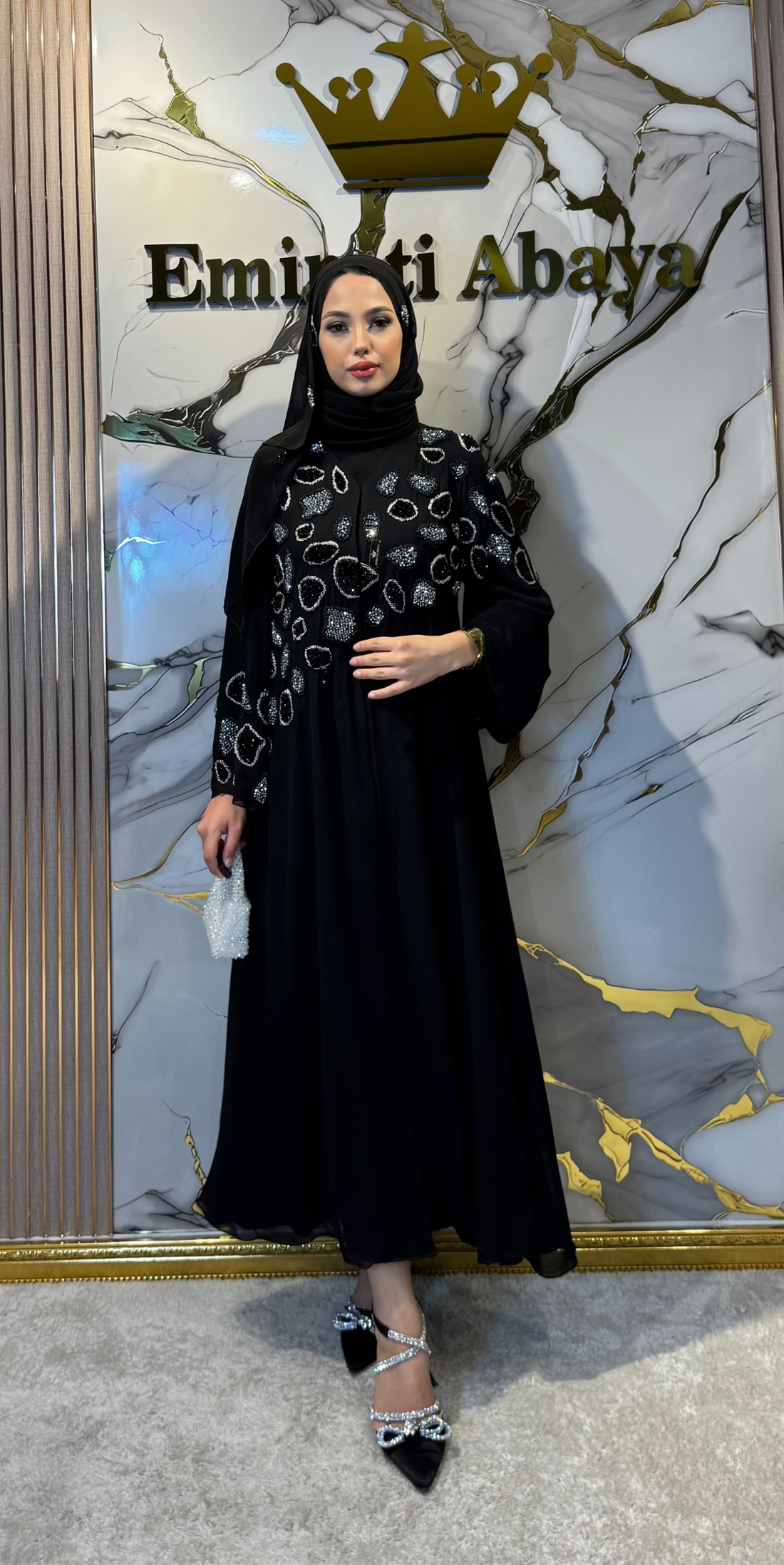 Black Chiffon Abaya with Hand-Embroidered White Crystal Stones brings elegance and luxury together. White crystal...