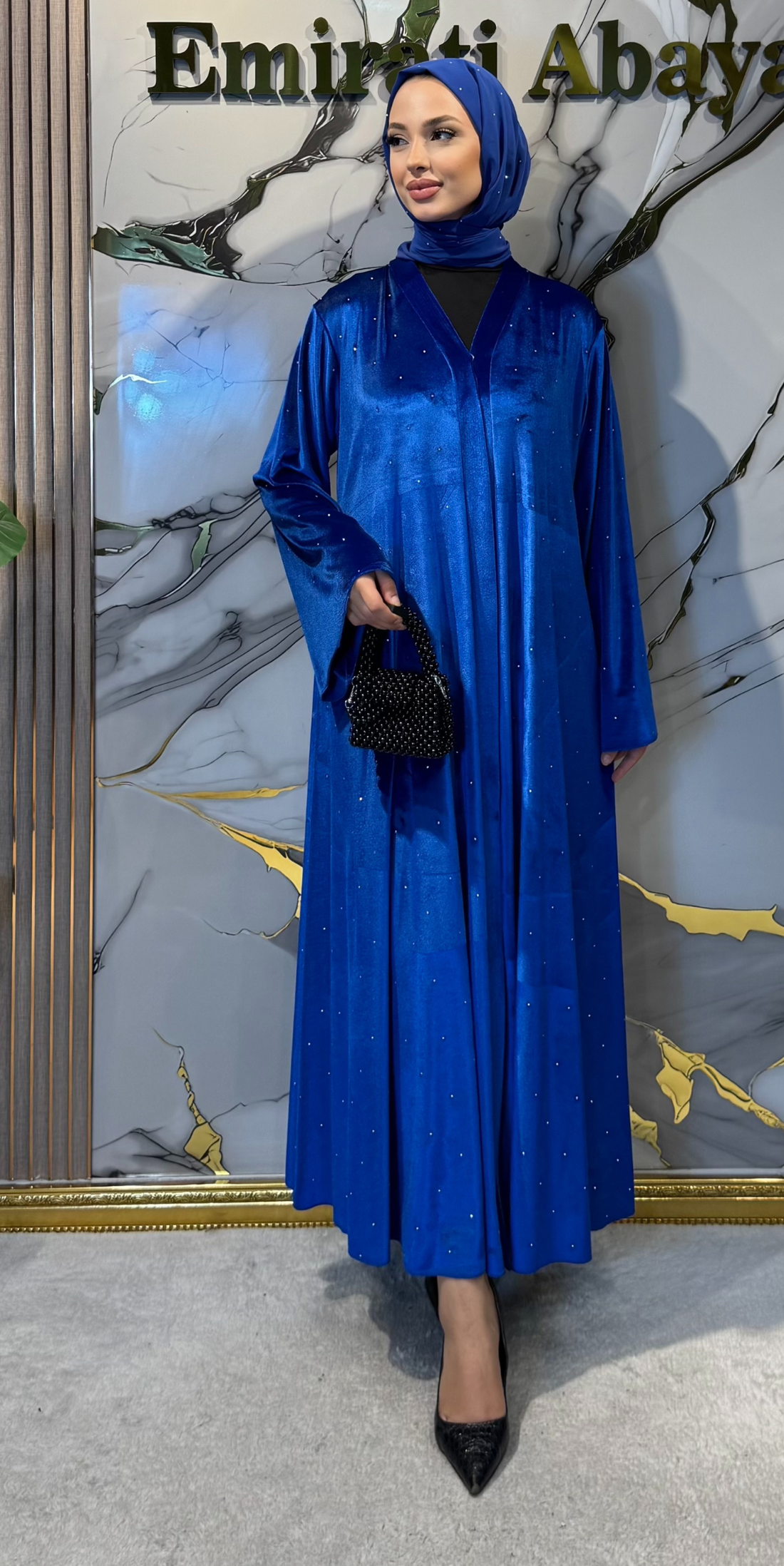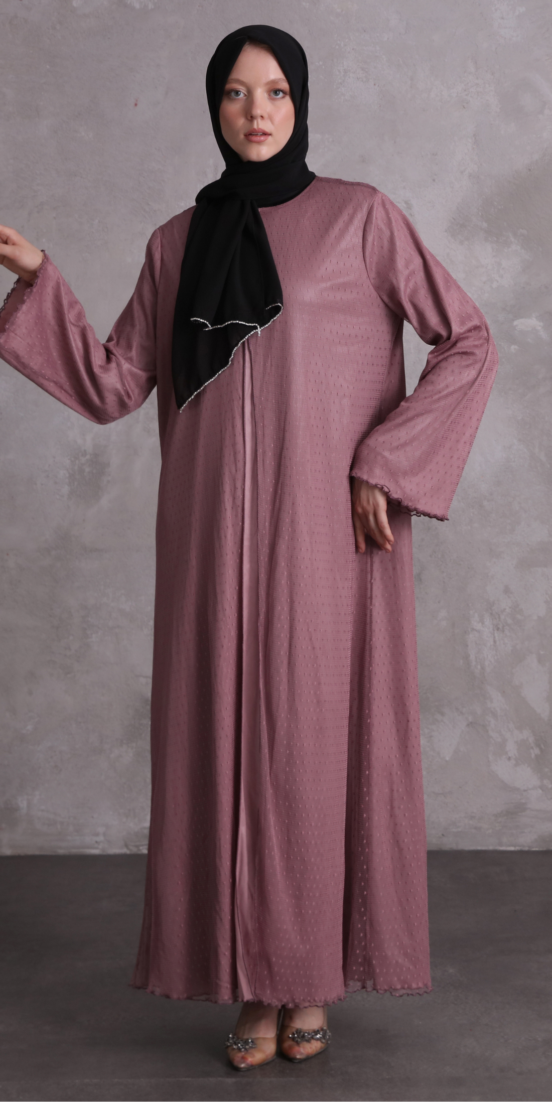Our abaya collection, adorned with stone details, is designed for those who want to dazzle on special occasions. The stone embellishments, which catch the light with every movement, offer an elegant and luxurious look.