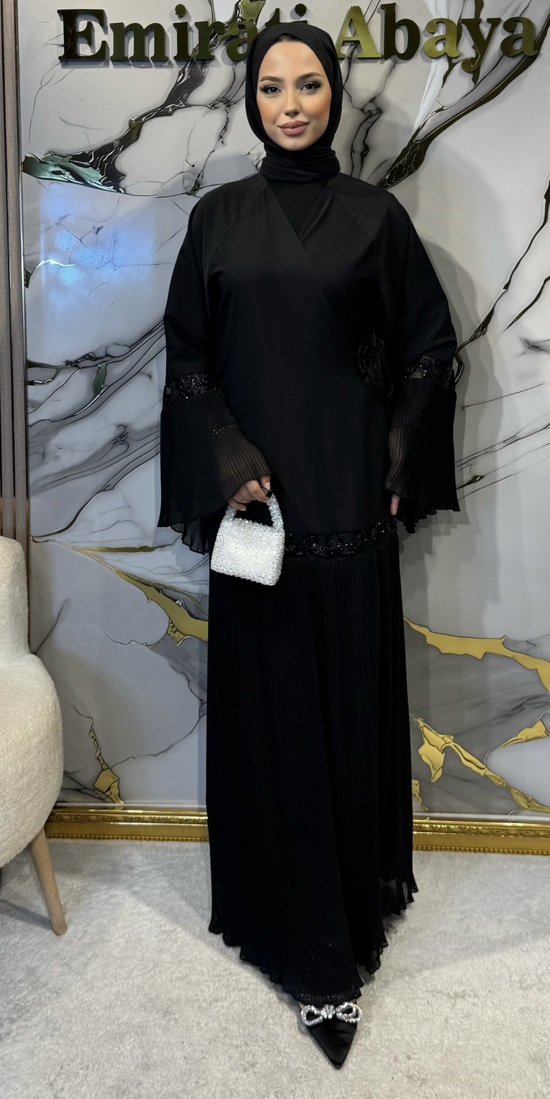 Our abaya collection, adorned with stone details, is designed for those who want to dazzle on special occasions. The stone embellishments, which catch the light with every movement, offer an elegant and luxurious look.