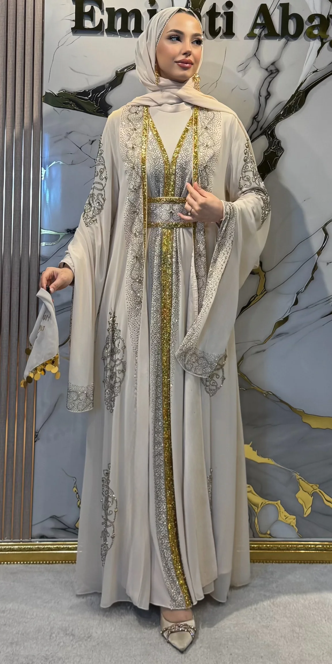 Discover timeless elegance with our magnificent Regional Cream Abaya set. This premium set consists of...