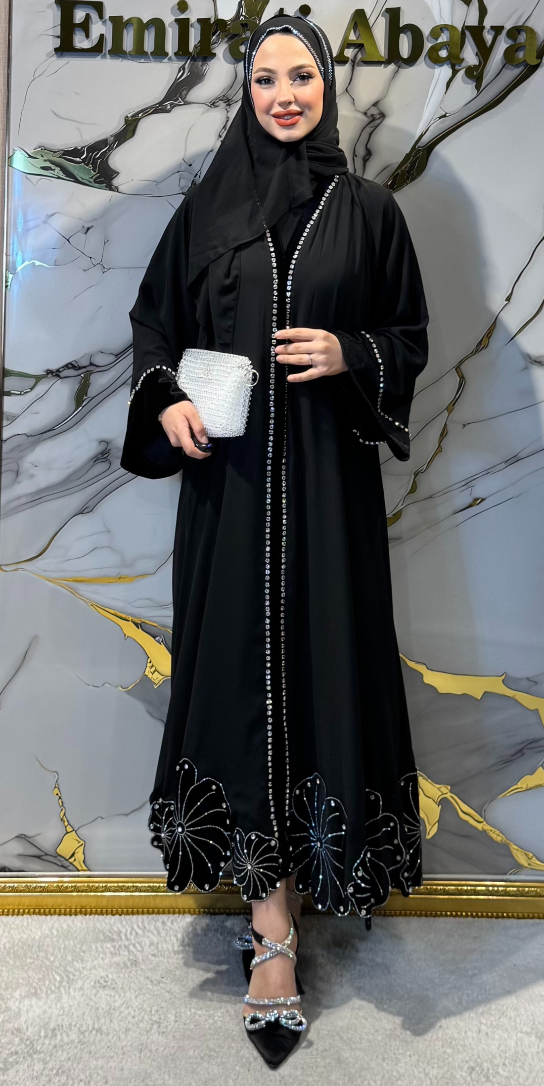 Elegant Black Abaya with Swarovski Crystals and Floral Pattern | WS60 JSB
