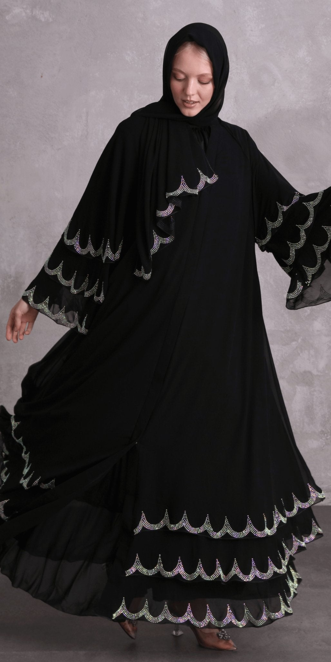 Black Abaya with Swarovski Stones on the Skirt Ends