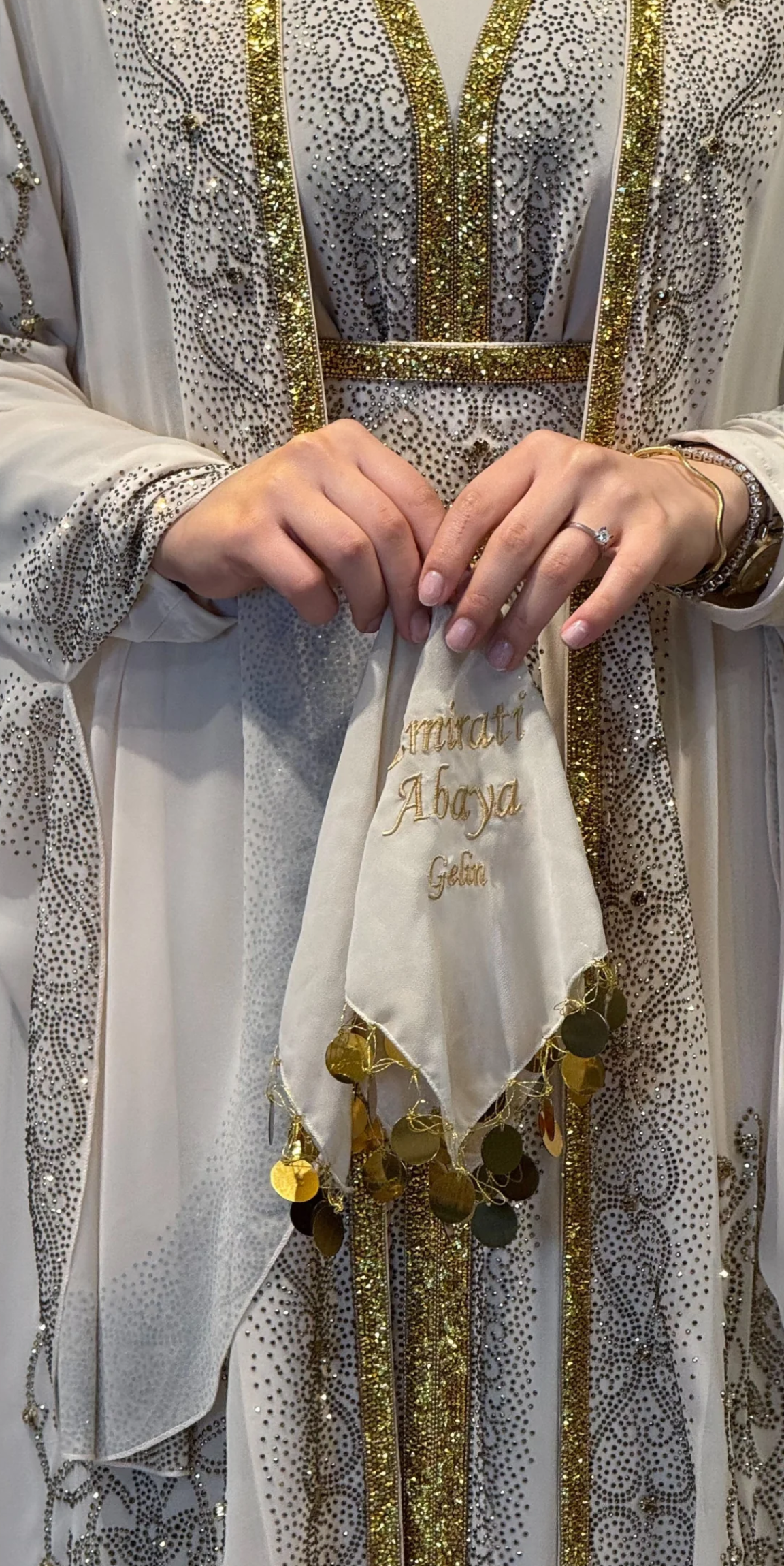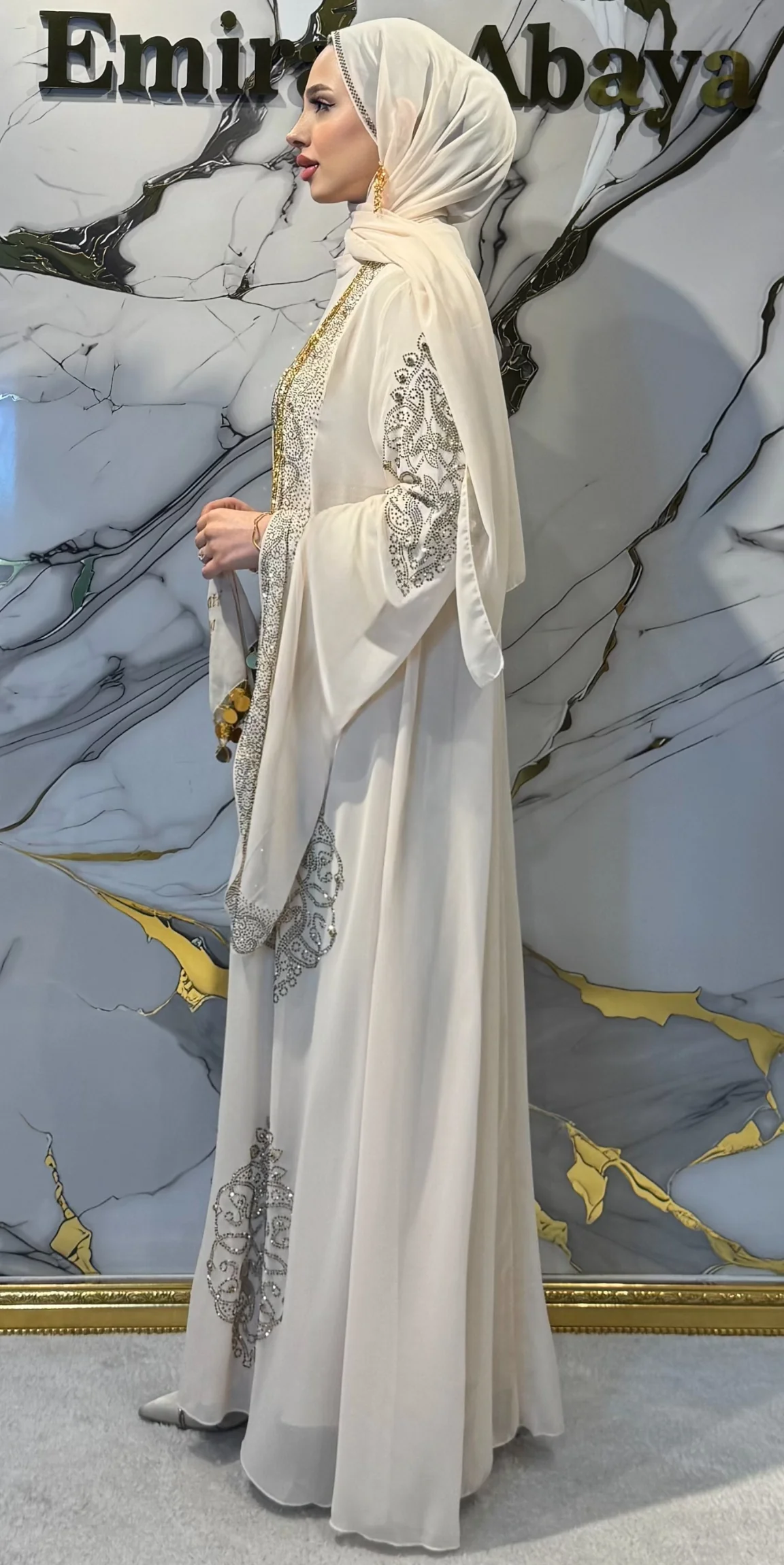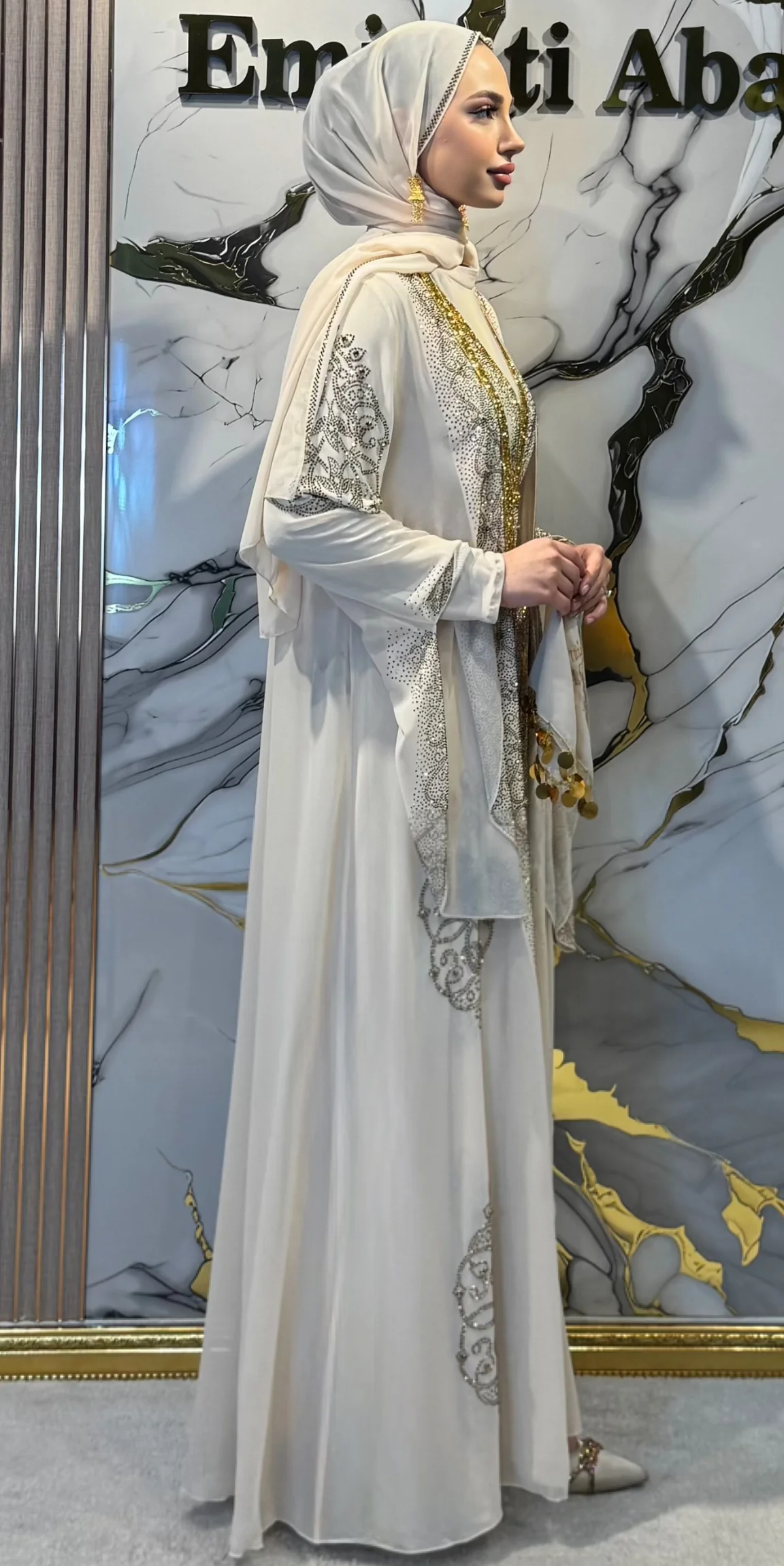 Krem yöresel abaya, Altın taşlı abaya, Yöresel tasarım abaya, Geleneksel abaya, Starlit Noir abaya, Şal dahil